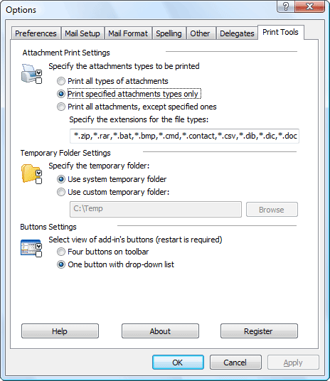 Print Tools for Outlook ist ein Add-In für Microsoft Outlook. Mit seiner Hilfe können Sie eingegangene und gesendete Nachrichten mit angehängten Dateien drucken, sogar ohne diese zu öffnen. Dieses Plug-In entpackt automatisch und druckt ZIP- und RAR-Dateien und arbeitet dabei im manuellen und automatischen Modus. Für den automatischen Modus sind nur wenige Einstellungen nötig, und sie sind intuitiv verständlich.